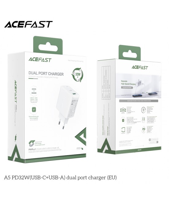AceFast Fast Charge Wall Charger A5 PD32W (1xUSB-C+1xUSB-A) EU