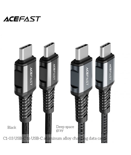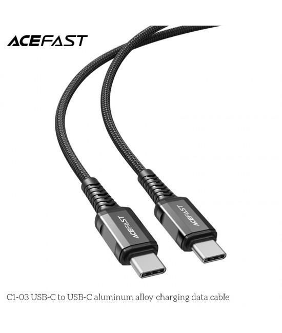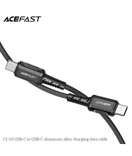 ACEFAST C1-03 charging data cable USB-C to USB-C, 1.2m length, aluminum alloy connectors, supports up to 20V / 3A – 60W charging for laptops and 3A fast charging for Android phones