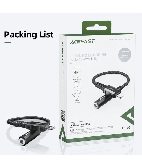 AceFast MFI Audio cable C1-05 Lightning to 3.5mm female