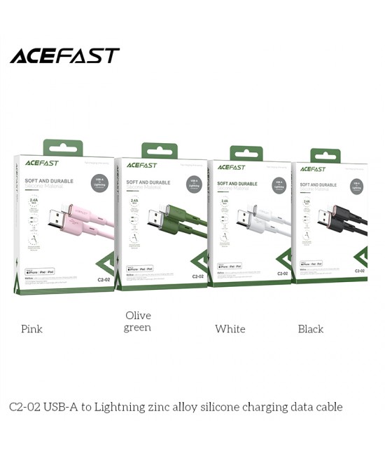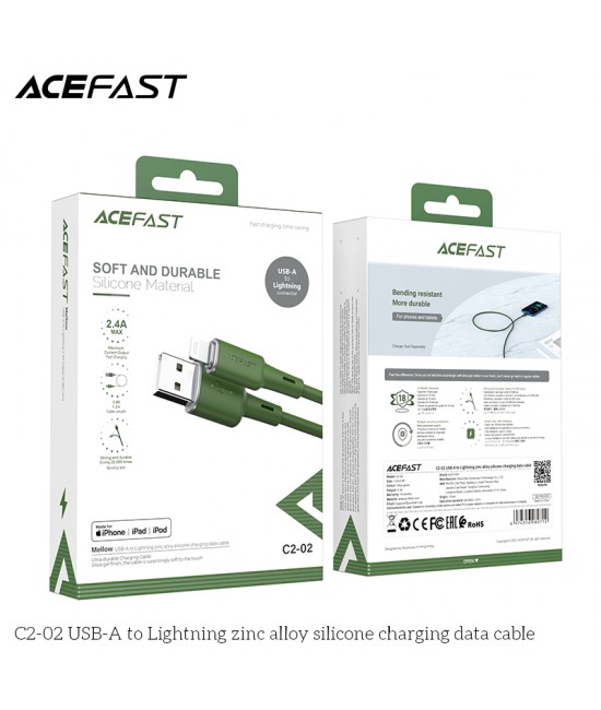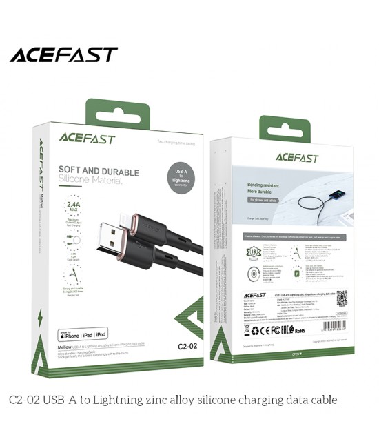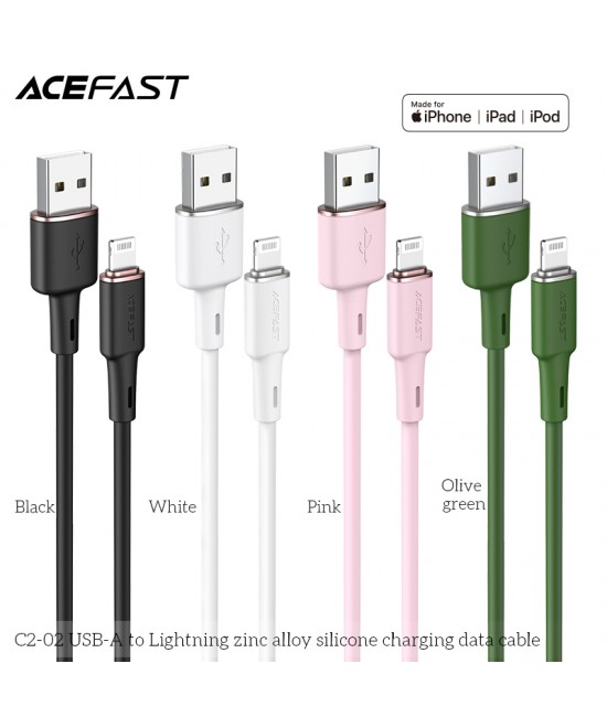 ACEFAST C2-02 charging data cable USB-A to Lightning, current up to 2.4A, 1.2m length, zinc alloy + food grade silicone, MFI certification