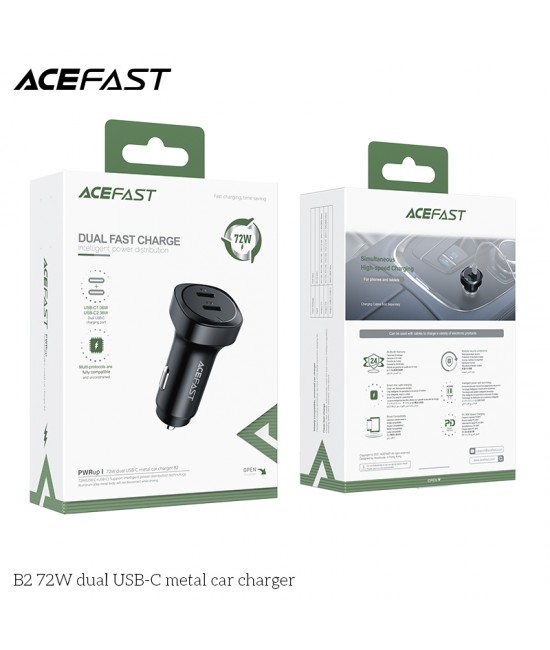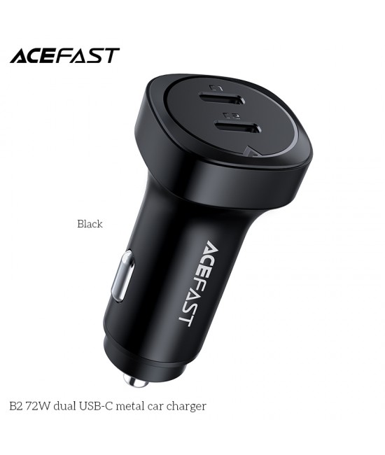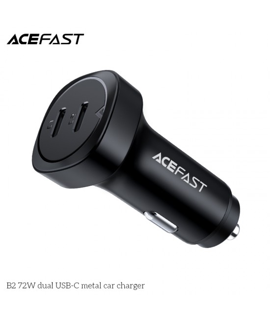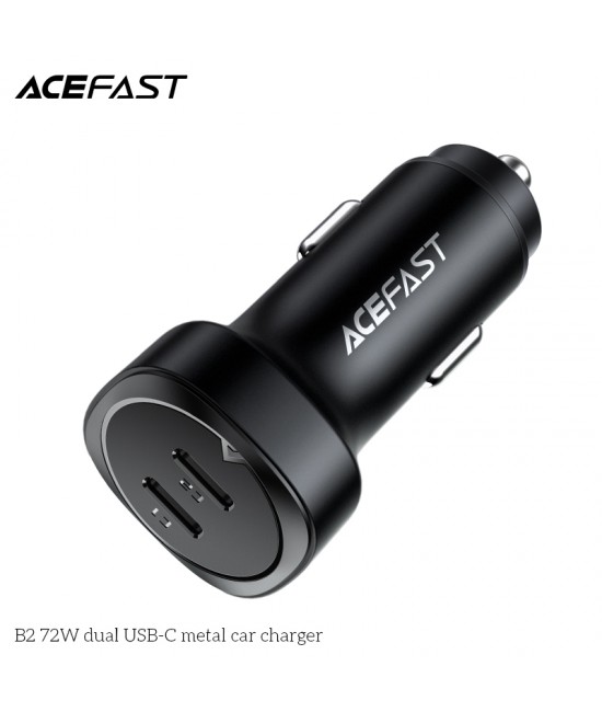 ACEFAST B2 car charger, dual USB-C 72W total output, zinc alloy body, support most fast charge protocols